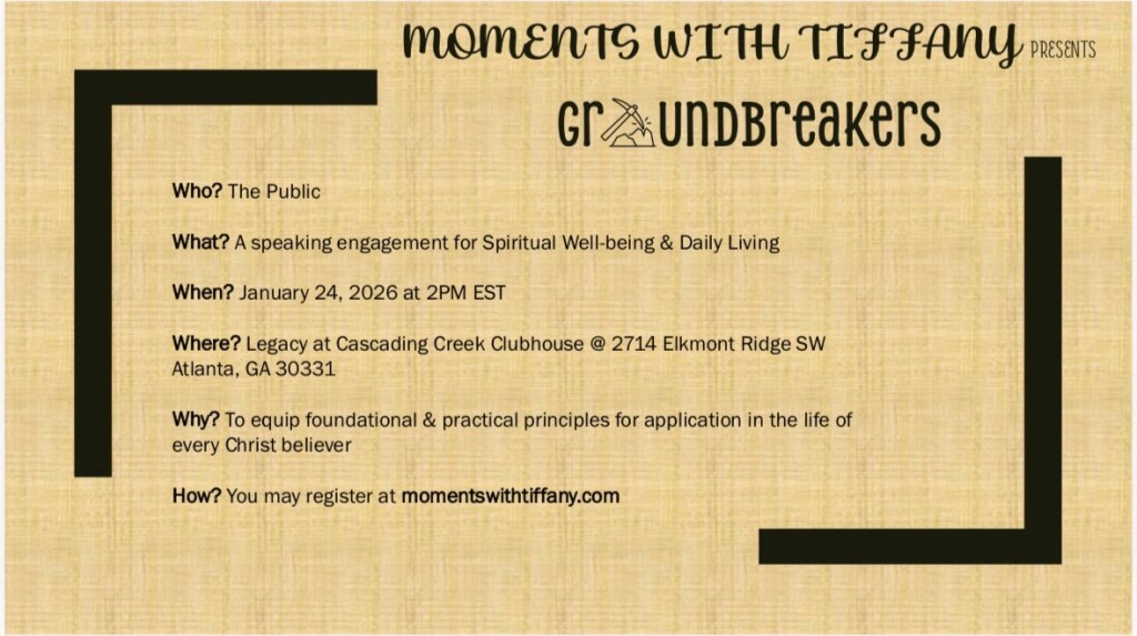 The good Lord has graced and favored Moments with Tiffany to break ground in Atlanta. It’s a privilege to make Him known to people near and far. The honest truth is that I don’t quite know the extended details of this ministry He’s entrusted to me, however, I do know that He cannot and will not fail me. He is the God that called me by name and I believe that even when I don’t have all the answers, I will trust that He knows the plans He have for me. So i’m going to show up for every opportunity HE makes available.